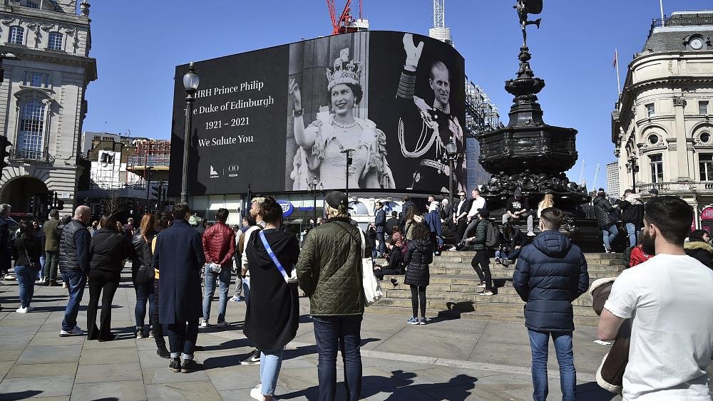 The famous advertising screen at Piccadilly Circus displayed a tribute for Prince Philip, on the day of his funeral. Hundreds of people in central London stopped to take photos and remember the Duke of Edinburgh as a minute of silence was held nationwide at the beginning of the service.