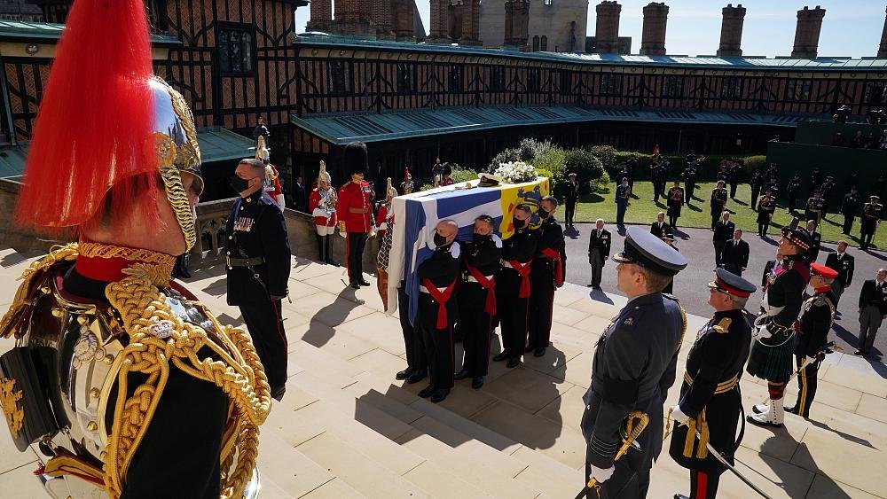 Queen Elizabeth II and other members of Britain’s royal family joined a procession at Windsor Castle ahead of the funeral for Prince Philip.
