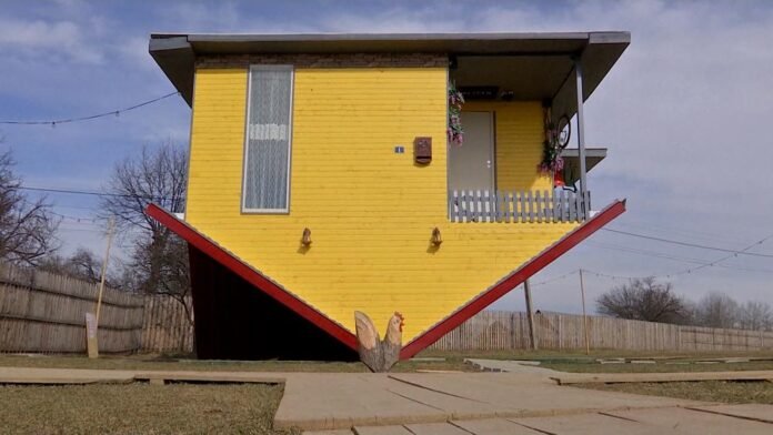 The unique house built in Gorj (South Western Romania) attracts tens of visitors who can’t wait to see it. The house owner built both the interior and exterior of the house upside down in great detail.