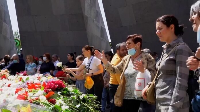 Armenians visited the country’s memorial to the victims of massacres, deportations and forced marches under the rule of the Ottoman Empire.