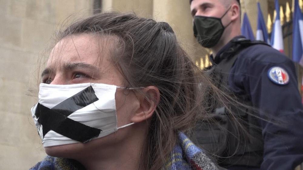 Extinction Rebellion activists protest at French parliament