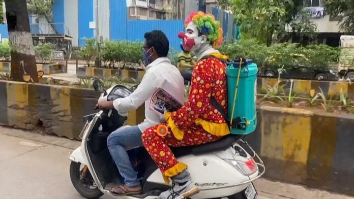 Volunteer social worker Ashok Kurmi is helping an army of young fans fight the coronavirus in Mumbai’s slums using an unusual accessory: a clown costume.