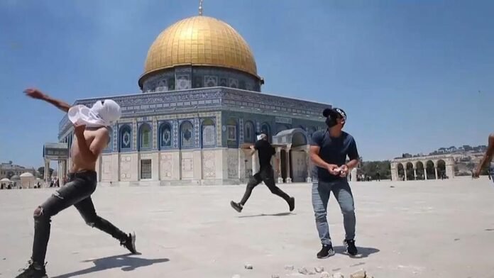 On Friday after prayers, young Palestinian men again protested at the revered Al-Aqsa mosque compound in Jerusalem.
