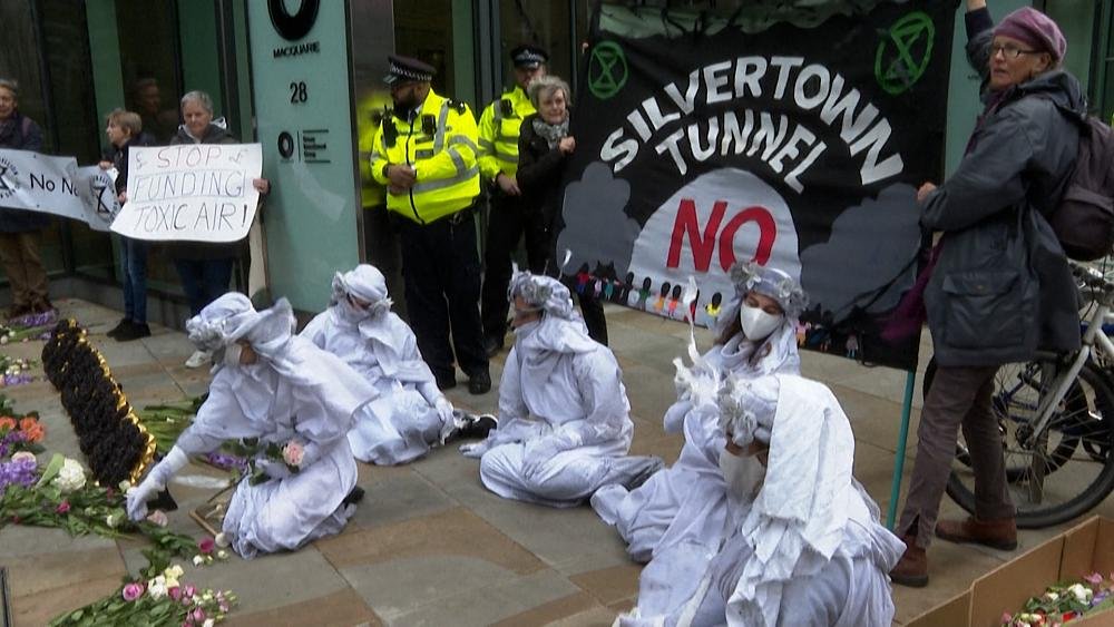 Environment protestors objection outside the Lloyds and also Macquarie workplaces in London to require the international monetary system quits placing cash right into making use of nonrenewable fuel sources, in advance of COP26 in Glasgow.