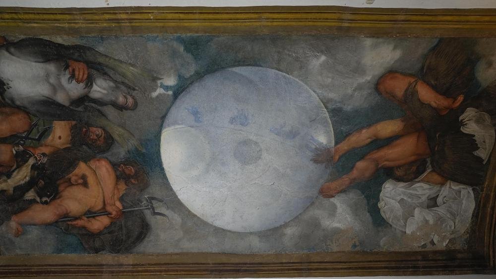 The 2.75-metre-wide mural was appointed in 1597 by the mediator as well as client of the arts, Cardinal Del Monte, that asked Caravaggio, after that in his very early twenties, to repaint the ceiling of a little space he made use of as an alchemy workshop.